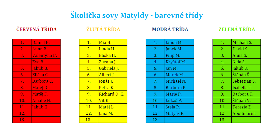 Školička sovy Matyldy_rozdělení do skupin